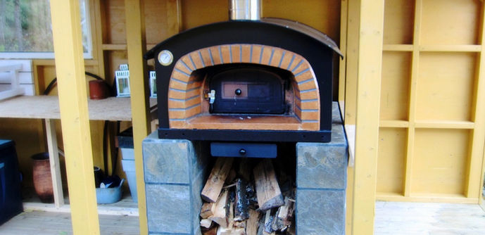 Den tradisjonelle vedfyrte ovnen i ildfast materiale, med vegger i emaljert, galvanisert stål. Ovnen holder på temperaturen i lang tid. Dør m/vindu og temperaturmåler. Askeskuff foran døra. Fantastisk pizzaovn og ovn til tradisjonell bakst og middager.